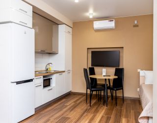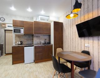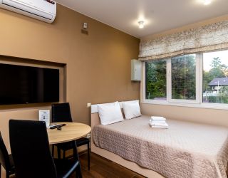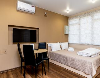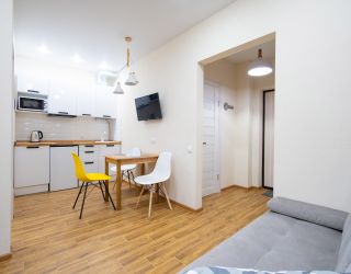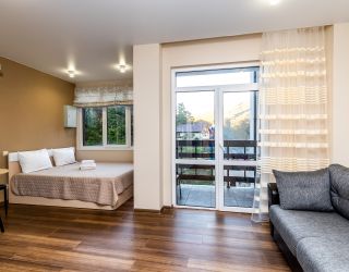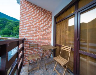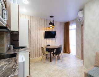 Апартаменты расположились в 7-этажном здании. К услугам гостей кровать, диван, шкаф, телевизор с плоским экраном, кондиционер, гладильные принадлежности, работает высокоскоростной интернет. С балкона открывается красивый вид на горы. Санузел с душем, стиральной машиной, полотенцами, туалетными принадлежностями и феном. Для самостоятельного приготовления еды есть кухонная зона, оборудованная холодильником, плитой, микроволновой печью, электрическим чайником и необходимым набором посуды.