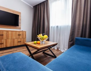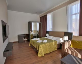 Двухэтажный корпус отеля разместился на главной улице поселка — Эстонской. В распоряжении гостей Стандартные номера, Студии и Апартаменты с мини-кухней. Во всех номерах есть телевизор, электрочайник. В ванных комнатах установлен душ, имеются косметические наборы.