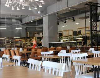 На первом этаже работает столовая, в меню — разнообразный выбор блюд. Также среди услуг беспроводной интернет и прачечная.