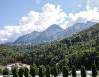 Самолетом до аэропорта Адлер, далее автобусом №535 до остановки «Мегафон».