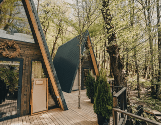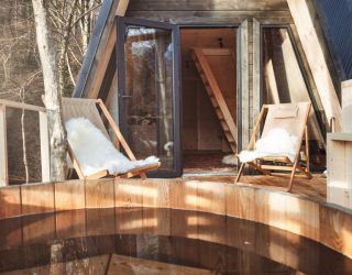 Шале с собственной панорамной террасой площадью 40 кв.м. рассчитаны на компанию до 6 человек. Возле каждого коттеджа установлена большая дубовая купель — место для отдыха и релаксации наедине или в компании. Купель наполнят и затопят по желанию гостей, одна растопка на 8 часов. В каждом шале есть эко-камин, который бесплатно растапливается для проживающих.
