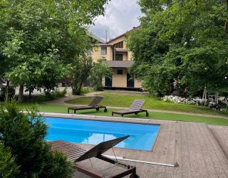 На территории работает кафе, есть уютный сад, зона для барбекю с беседками и гостиная для отдыха с камином. В распоряжении отдыхающих — открытый бассейн, работающий сезонно, и русская баня. Среди услуг — охраняемая автостоянка, комната для хранения и сушки лыж и горнолыжного инвентаря. Для юных гостей оборудована детская площадка с игровым комплексом, малышам по запросу предоставляются кроватки-манежи.