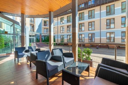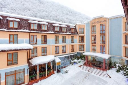 Самолетом до аэропорта Адлер, далее на автобусе №135, 105, 105с в направлении Роза Хутор до остановки «ТРЦ Горки Молл». Затем пешком 800 м (~ 10 мин) пешком до отеля.
