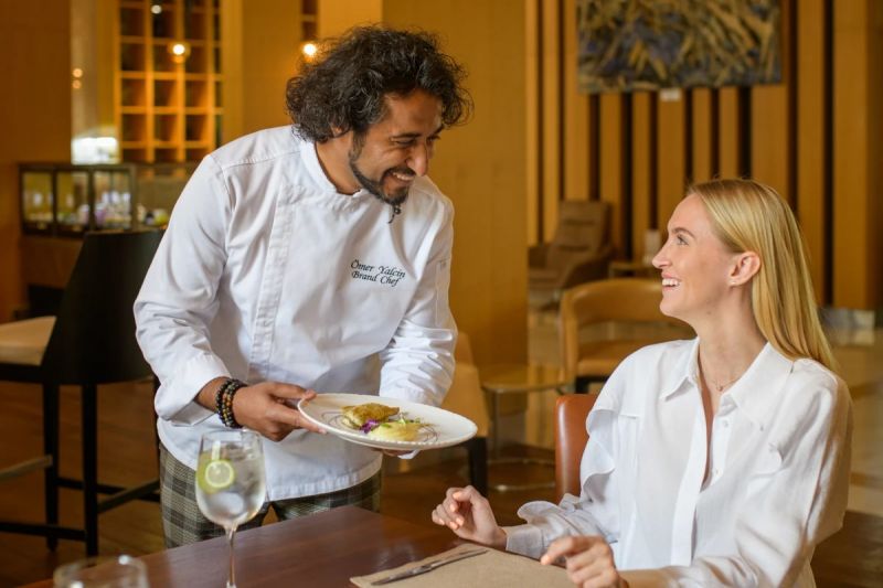 Завтрак для постояльцев по системе «шведский стол», приготовляемый в отеле, иногда заменяется сетом. Обеды и ужины гости отеля планируют по своему усмотрению: в ресторанах «The River» и «L’Olivo», лобби баре, «Pool bar», принадлежащих гостинице, или, по желанию – в окрестностях, где есть точки питания на любой вкус.