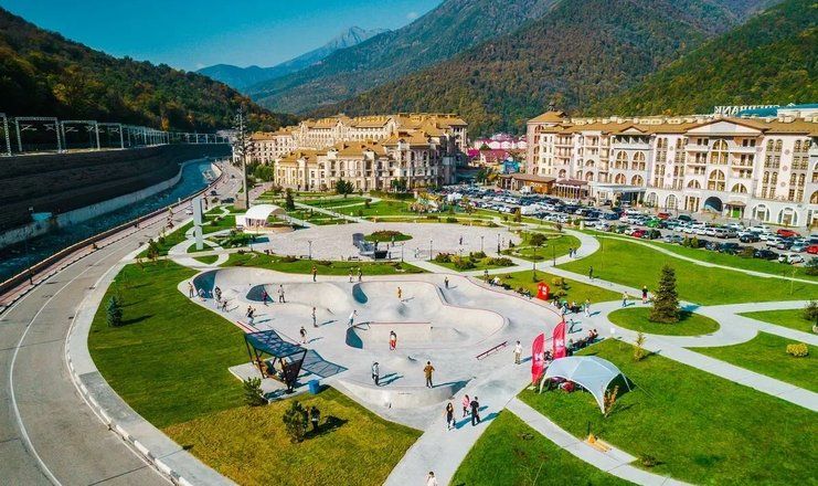 Вблизи отеля расположены байк-парк, веревочный парк, экскурсионные места и маршруты. В городе-курорте Красная Поляна гостей ждут кафе и рестораны, торговый центр «Горки Молл», аквапарк, аптеки, кассы, пункты проката, продуктовые магазины – для полноценного и разнообразного отдыха здесь предусмотрено всё.