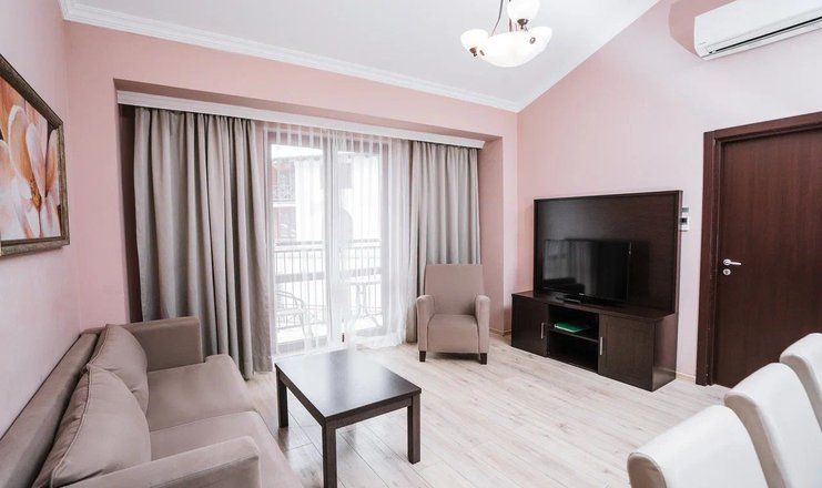 Комплекс апартаментов расположился на Поляне 540 и Поляне 960. Из окон большинства апартаментов и таунхаусов открываются великолепные виды на вершины Кавказского хребта. Все номера комплекса выполнены в элегантном современном дизайне с функциональной планировкой. Вы не отыщете ни одного похожего друг на друга апартамента или таунхауса, каждый индивидуален по планировке и по площади.