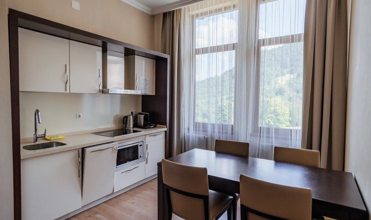 Проживание в апартаментах и таунхаусах подойдёт для уединённого отдыха, отпуска с семьёй, путешествия дружной компанией или для длительного проживания и удалённой работы во вдохновляющей атмосфере гор.