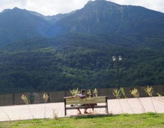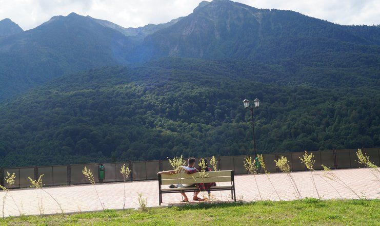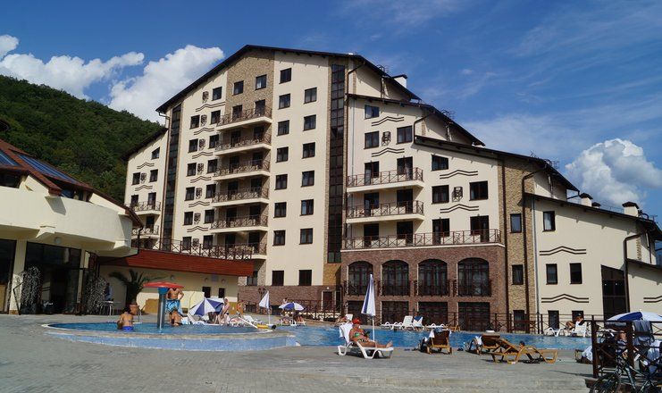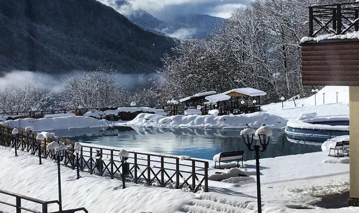 Самолетом до аэропорта Адлер, далее на автобусе №105, 105с, 135 до остановки «Пик Отель», далее на автобусе №163 до остановки «Жилые дома», пешком 530 м до комплекса отдыха.