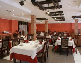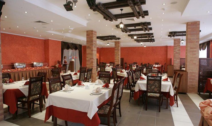 В комплексе питание гостей может быть организовано по системе «Шведский стол». Помимо основного ресторана в пансионате есть бар «Ротонда».