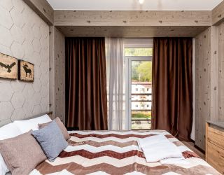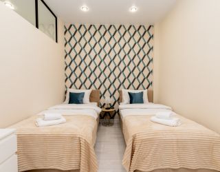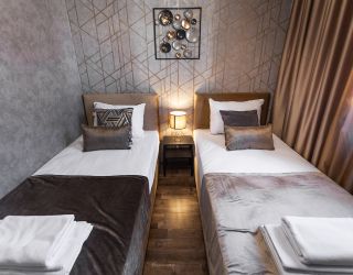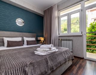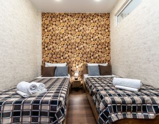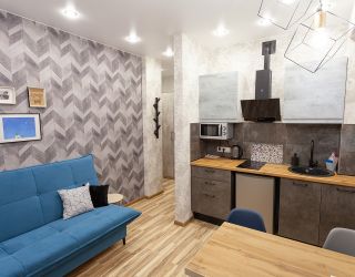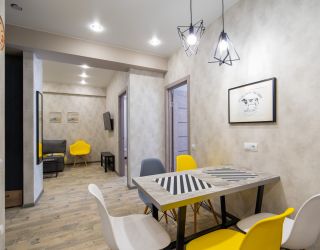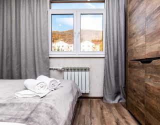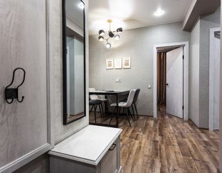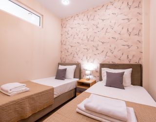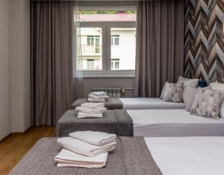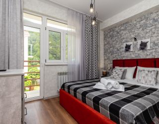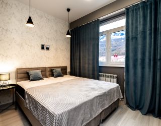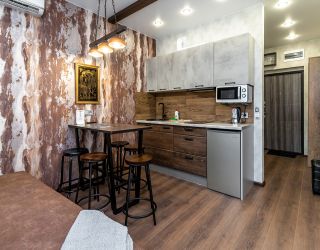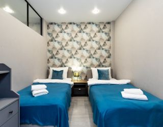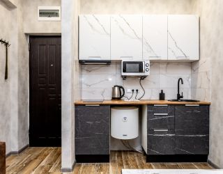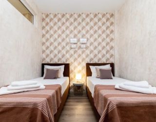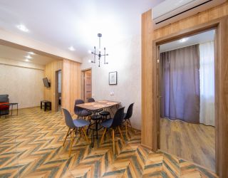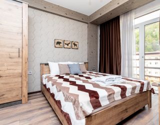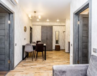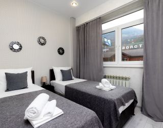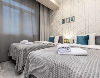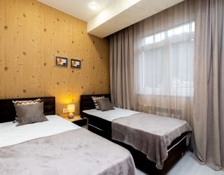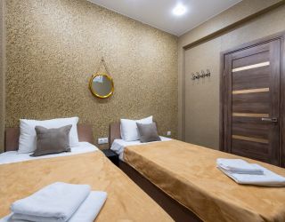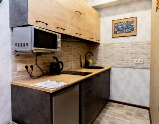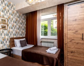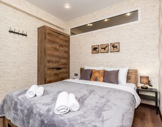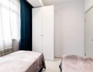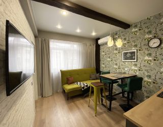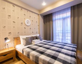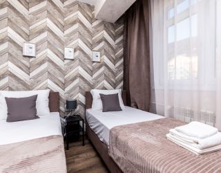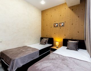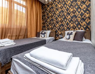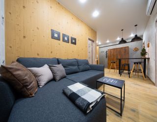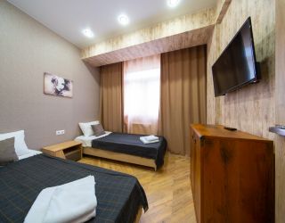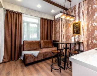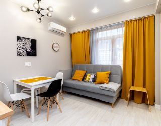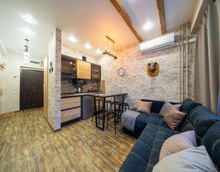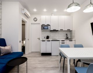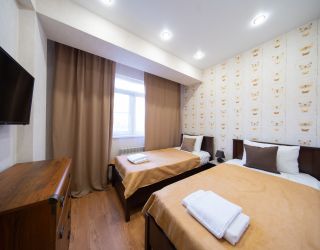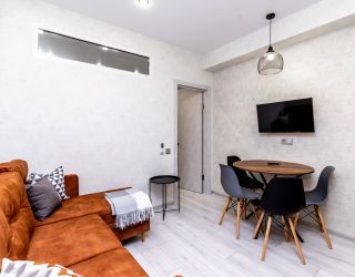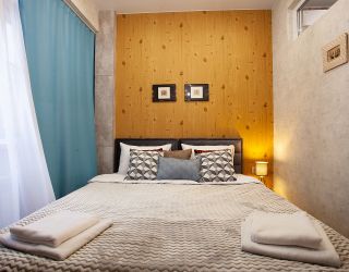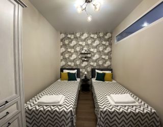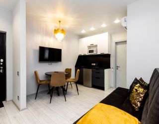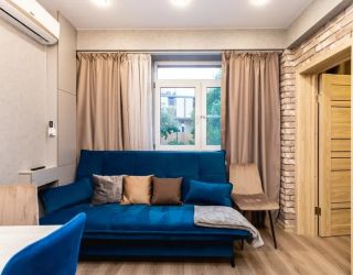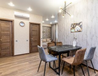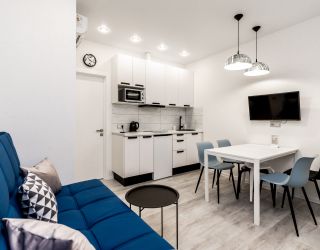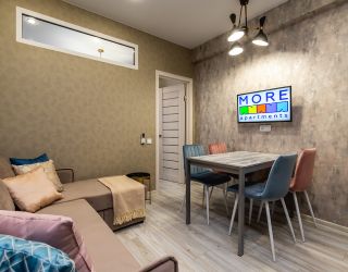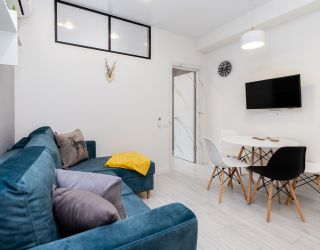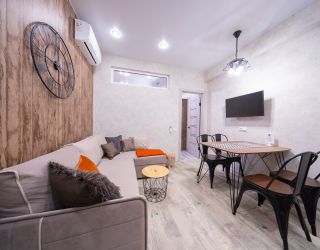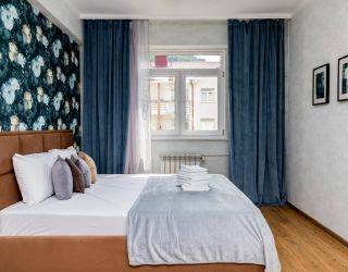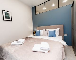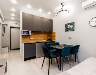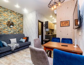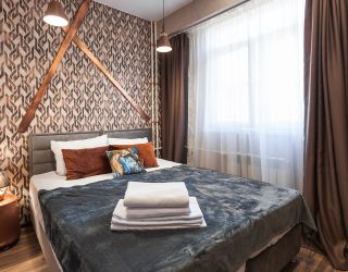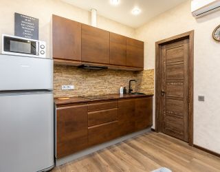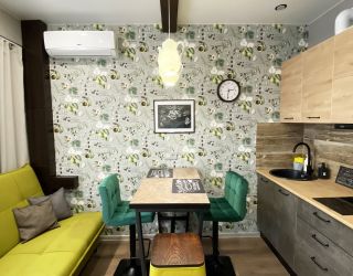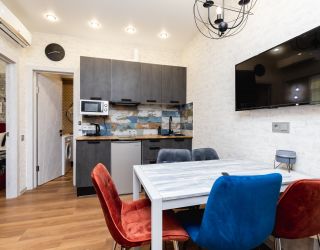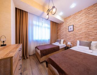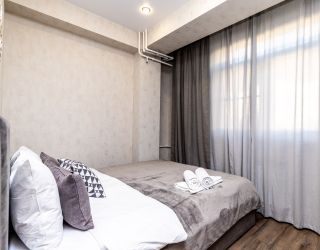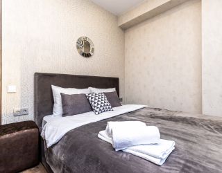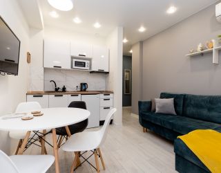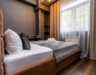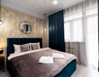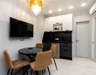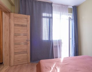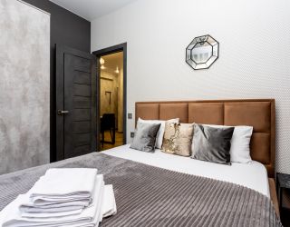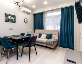 Апартаменты расположились в 6-этажном здании. Интерьер комнат выполнен в светлых оттенках, установлена удобная мебель для сна, шкаф для хранения одежды. В гостиной есть диван для отдыха, телевизор с плоским экраном. Санузел с душем, полотенцами, туалетными принадлежностями и феном. К услугам гостей стиральная машина, кондиционер. На кухне для самостоятельного приготовления еды предусмотрена необходимая бытовая техника и набор посуды. Личный транспорт можно оставить на парковке возле здания.