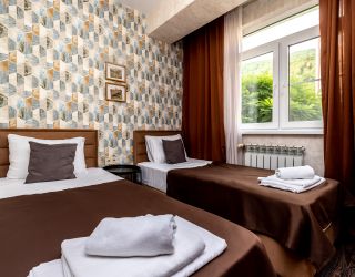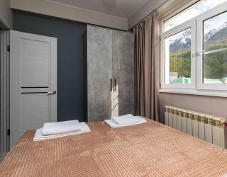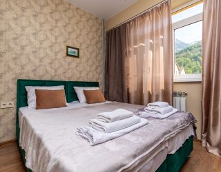 Поездом до ж/д вокзала Адлер, далее на электричке до станции «Эсто Садок», далее автобусом №535, 105, 105э, 105с, 163 до остановки «Мегафон», затем пройти 430 м до апартаментов.
