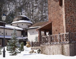 Поездом до ж/д вокзала Роза Хутор, далее на автобусе А, Б до остановки «Роза Холл». Пройти 560 м до отеля.