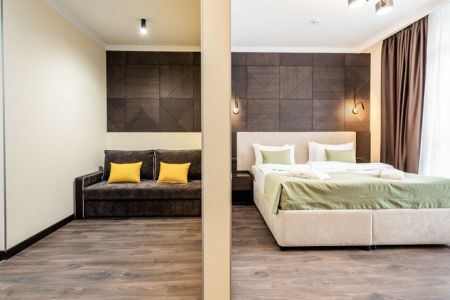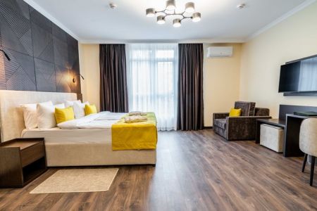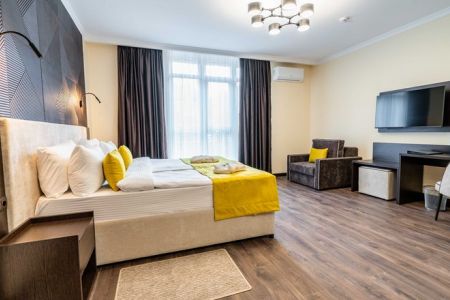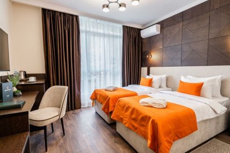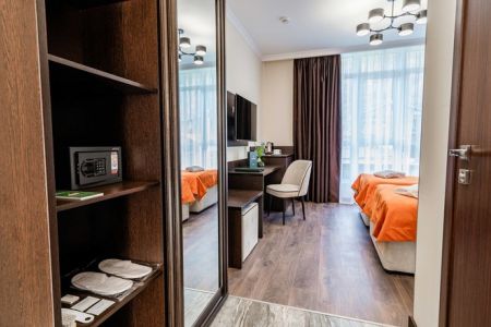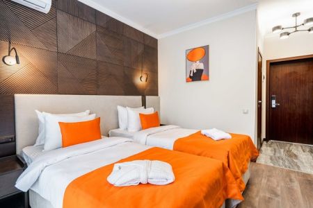 На самолете до аэропорта Адлер, затем на автобусе №105э до остановки «Мегафон», далее пройти 256 м до отеля.