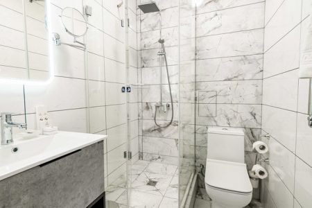 На поезде до жд вокзала Адлер, затем на автобусе №105э до остановки «Мегафон», далее пройти 256 м до отеля.