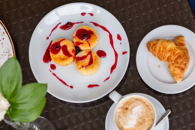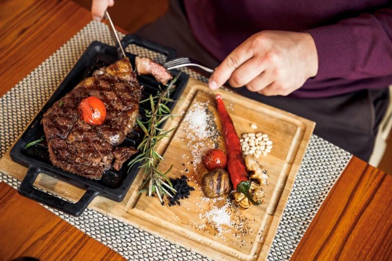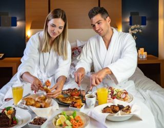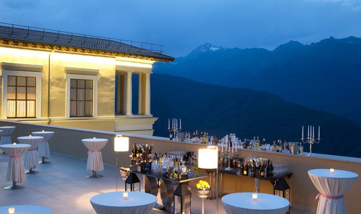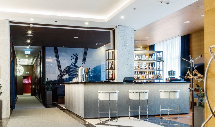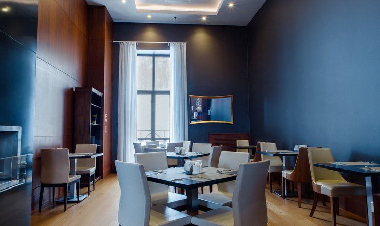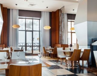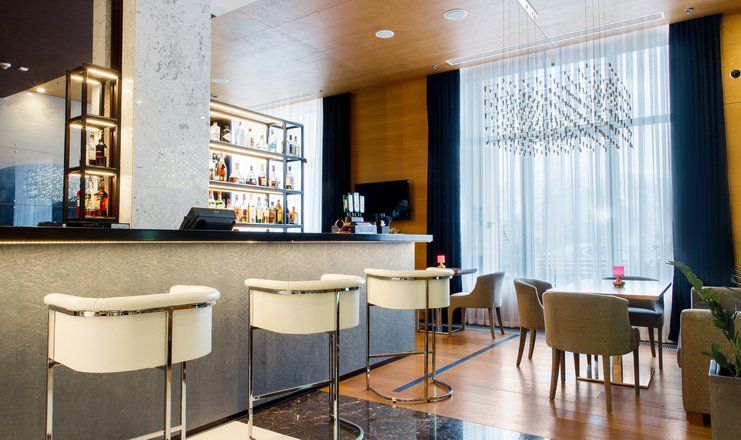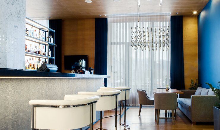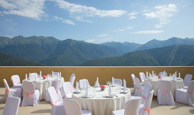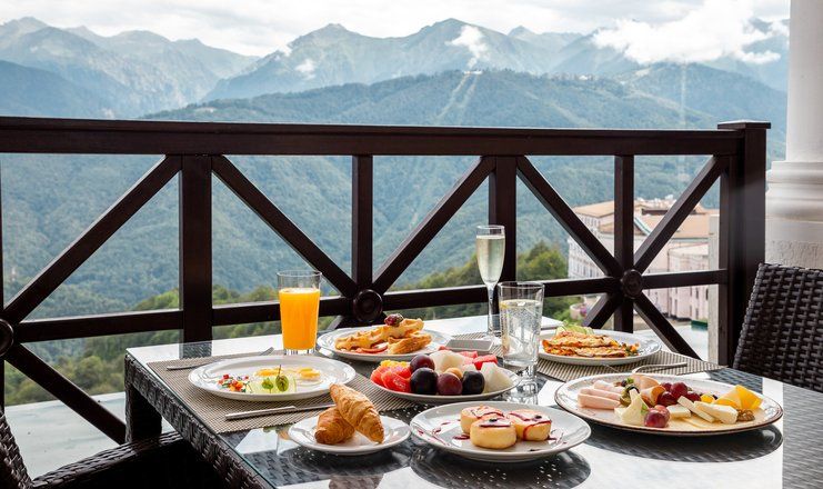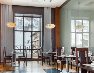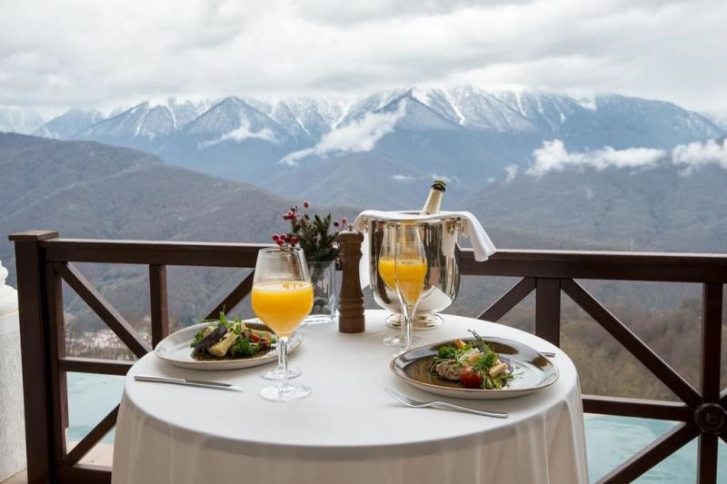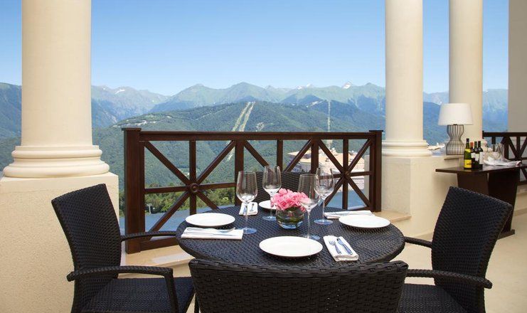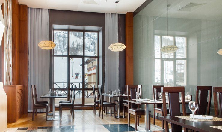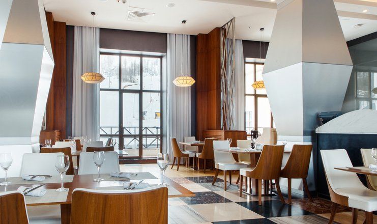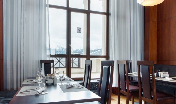Завтраки подаются по системе «шведский стол», обеды и ужины – по меню. Ресторан расположен на 7-ом этаже и открывает обзор на горный рельеф хребта Аибга. В отеле работает круглосуточная доставка еды и напитков в номер. Ресторан «The Grill» - гордость отеля, меню включает основные направления европейской кухни и гриль-меню в авторском исполнении, ресторан работает по системе «шведская линия» на завтрак и a la carte на обед и ужин. Идеален для проведения банкетов, свадебных регистраций и торжеств.