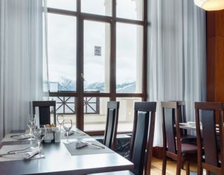 Пятизвездочный отель с собственной зоной выката находится в уединенном месте на Поляне 960 и предлагает 119 элегантных номеров с панорамными видами на горы.