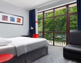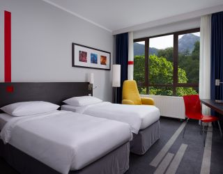 Отель предлагает гостям более 200 номеров разных категорий: от стандарта до люкса. Продуманный стильный интерьер, современная удобная мебель, а также отличное техническое оснащение номеров вне зависимости от выбранной категории, сделают пребывание в отеле комфортным и запоминающимся. Дополнением служат живописные виды на окружающие ландшафты и горную реку Мзымту открывающиеся из окон гостиницы.