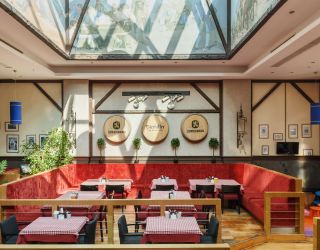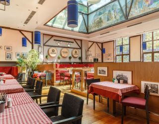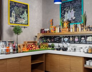 На территории отеля одновременно работают ресторан в баварском стиле «Bierкeller», где по утрам гостям предлагают завтраки по системе «шведский стол», а вечером сытный ужин из разнообразных блюд европейской кухни, кальян-лаунж с оригинальной кальянной картой и лобби-бар, в котором всегда можно выпить чашку чая.
