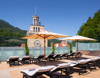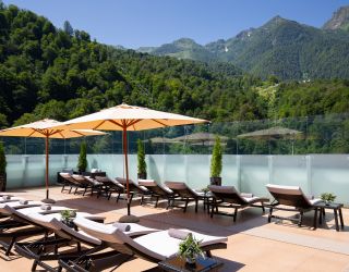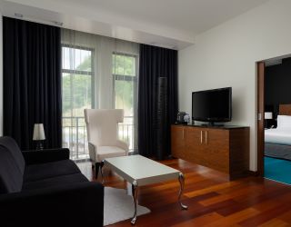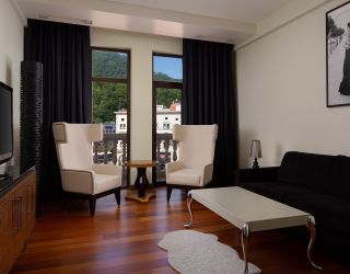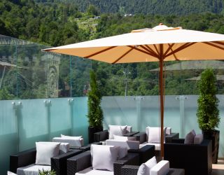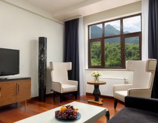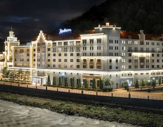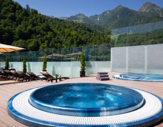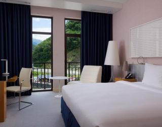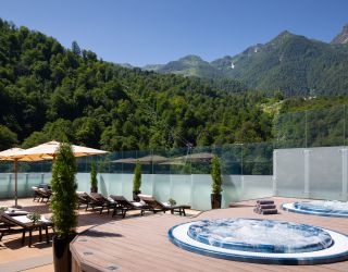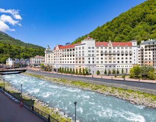 Единственный на курорте пятизвездочный отель «Radisson Hotel, Rosa Khutor». Отель с первоклассным сервисом разместился в пешей доступности канатных дорог «Олимпия» и «Стрела".