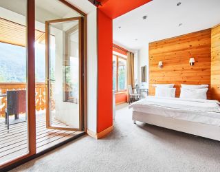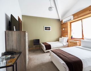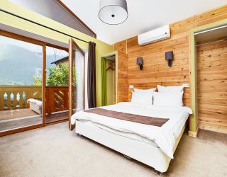 Уютные номера располагаются в 3-этажном здании. В интерьере комнат используется натуральная древесина. В каждом из них установлен плоский телевизор, в ванных комнатах есть как ванна, так и душ, предоставляется фен. Кроме того, из всех номеров открывается прекрасный вид на окружающие горы. Многие номера оборудованы балконами.