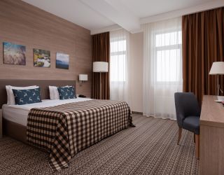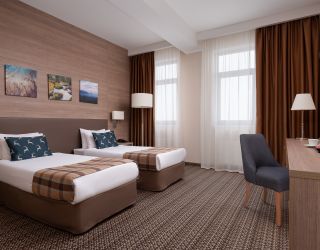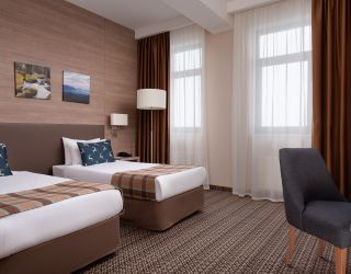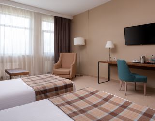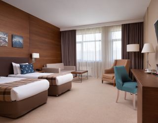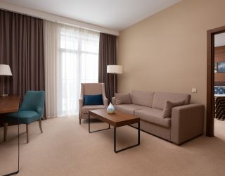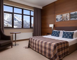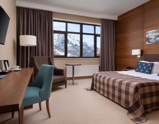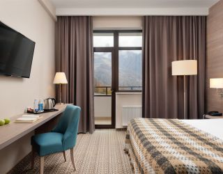 Номерной фонд отеля включает 202 комфортабельных хорошо меблированных номера, интерьер которых выполнен в сдержанных пастельных оттенках. Большинство комнат имеют балконы. Откуда открываются потрясающие виды на вершины Кавказских гор. Номера категории от стандарта до люкса оснащены всем необходимым – телевизор, фен, кондиционер, чайник, мини-бар.
