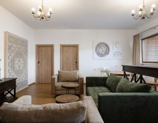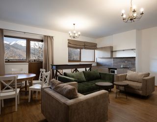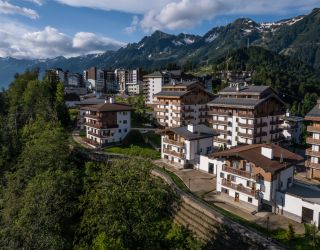 Отель, позиционирующий себя как семейный, предлагает отдыхающим разместиться в 15 трех-четырехэтажных коттеджах-шале, каждый из которых для удобства гостей снабжен лифтом и вмещает от семи до двенадцати номеров: стандартные однокомнатные или двухкомнатные, рассчитанные на большие семьи. В номерах есть необходимая техника и удобная мебель, во многих имеются террасы и балконы, с которых открываются виды на величественные Кавказские горы. Помимо этого, в каждом шале есть общая кухня, гостиная, камера хранения и комната для сушки горнолыжного снаряжения.