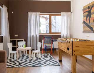 Семейный отель отлично подходит для отдыха с детьми. Каждый коттедж оборудован всем необходимым – есть кроватки, стульчики для кормления, организованы детские игровые уголки.