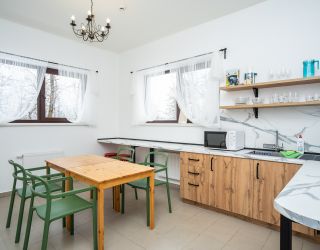 - пользование оборудованной кухней, расположенной в каждом коттедже (микроволновая печь, мультиварка, холодильник, набор посуды, столовых принадлежностей)