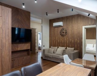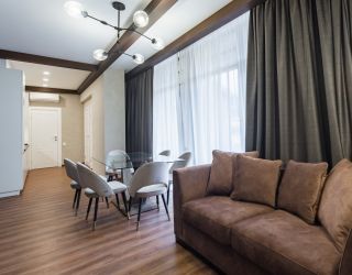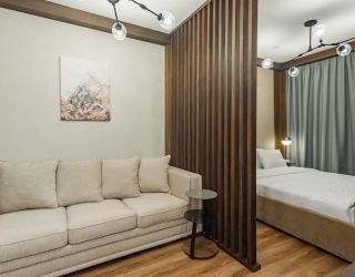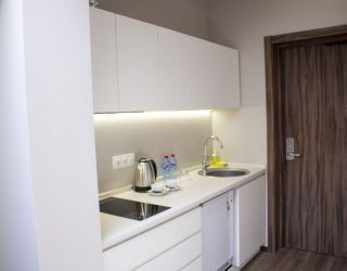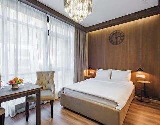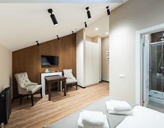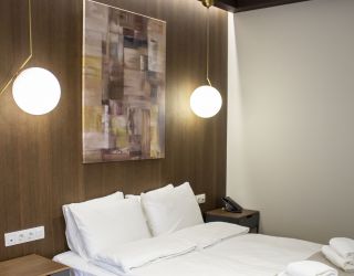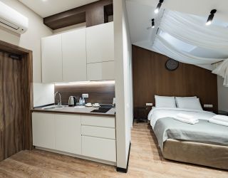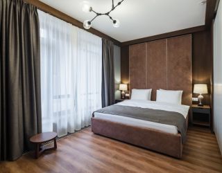 В номерах стильный сдержанный интерьер, выдержанный в приятной цветовой гамме с использованием благородных шоколадных оттенков. Комнаты оснащены санузлом с душем, сплит-системой, есть телевизор-ЖК и мини-кухня с необходимой бытовой техникой.