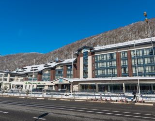 Поездом до ж/д вокзала Адлер, далее на автобусе№105, 105с, 105э до остановки «Горная карусель». Затем пешком 370 м до отеля. Или на электричке до станции Роза Хутор. Далее на автобусе Б до остановки «Горная карусель», потом 340 м пешком до отеля.