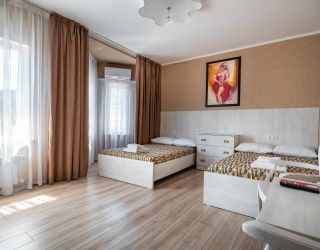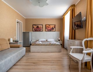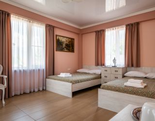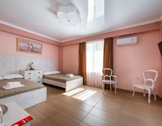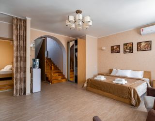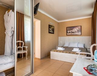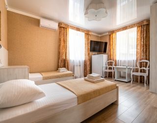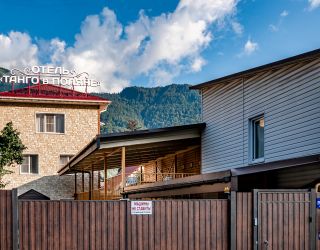 Комфорт-отель, расположенный в центре поселка, состоит из двух корпусов — в два и три этажа. В распоряжении гостей 13 номеров, в большинстве комнат из окон открывается красивый вид на горы. В каждом номере имеется кондиционер, телевизор, фен, электрочайник, а также санузел с душем.