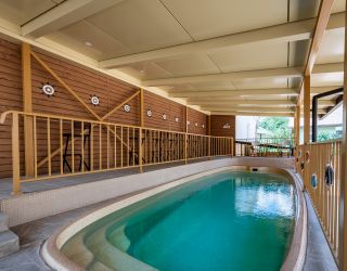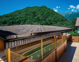 На территории для гостей работает открытый круглогодичный подогреваемый бассейн и сауна, где можно расслабиться после насыщенного дня, зимой доступно лыжехранилище и организован трансфер на подъёмники.