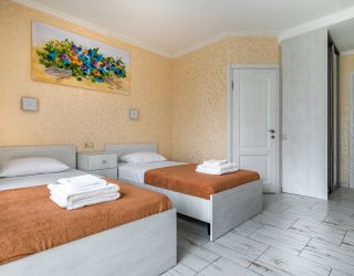 Номерной фонд разного уровня вместимости и комфорта располагается в 3-этажном здании. В комнатах есть вся необходимая мебель, телевизор, мини-холодильник, кондиционер, электрический чайник, работает Wi-Fi. Санузел индивидуальный для каждого номера. Для гостей предусмотрен фен, косметические принадлежности, полотенца.