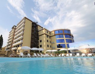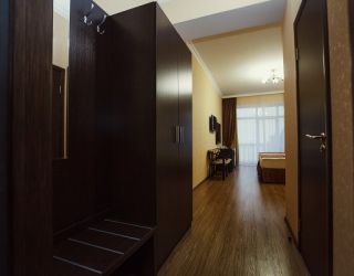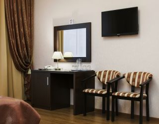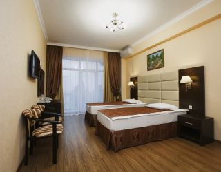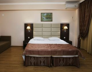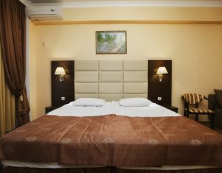 Пансионат имеет собственную парковку, здание отеля располагает солидным номерным фондом. Все номера оборудованы удобной мебелью и необходимой техникой, создающей максимальное удобство. На этажах есть меблированные террасы с панорамным видом на округу.