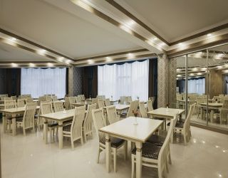 - 3-разовое шведский стол (если количество гостей меньше 30 человек - континентальное меню); в высокий сезон питание осуществляется в две смены с закреплением конкретного столика за гостем