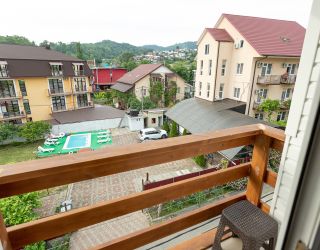 Поездом до ж/д вокзала г. Сочи, далее на электричке в направлении: «Туапсе-Пассажирский» до станции «Горный Воздух», далее пешком 670 м до отеля.
