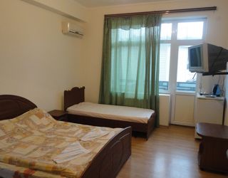 Трехэтажный корпус гостевого дома занимает территорию площадью 0,08 Га с внутренним двориком. Отдыхающим отель предлагает номера Стандарт, Повышенной комфортности и Люксы, оснащенные кухней. В каждом номере имеется собственный санузел и стандартный набор техники — телевизор, холодильник и сплит-система.