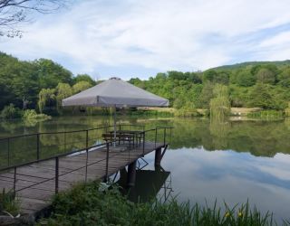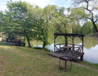 - в пяти минутах ходьбы, живописное озеро с баней, беседками для отдыха и рыбалкой. Беседка и рыбалка для гостей коттеджа в подарок.
