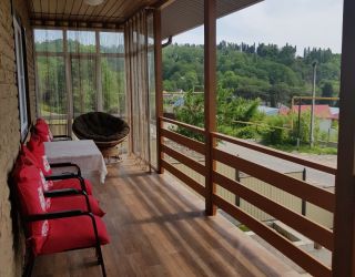 Новый деревянный дом расположен в пригороде Сочи пос. Уч-Дере, в 15 км от центра города.