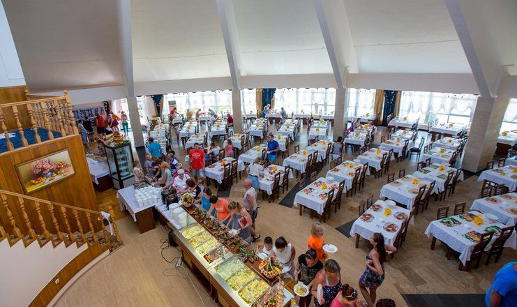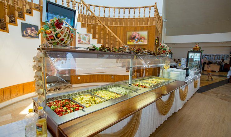 В стоимость проживания в пансионате включено трехразовое питание, организованное по системе «шведский стол» в уютном ресторане, специализирующемся на русской, европейской и кавказской кухне. В летний сезон также работает шашлычная, бар и фитобар.