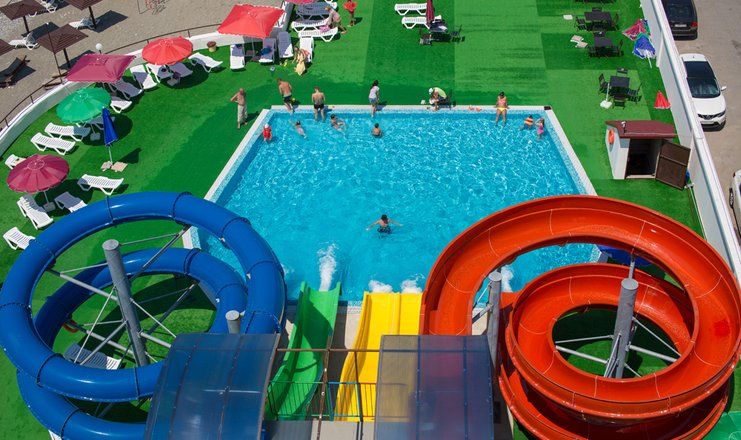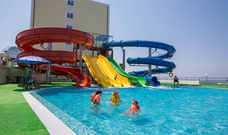 На пляже отеля имеются аэрарий и лежаки. Здесь есть возможность не только насладиться пляжным отдыхом и купанием в Черном море, но и устроить себе катание на скутерах, ватрушках, бананах.