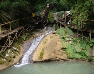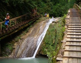 Поездом до ст. Лоо, далее на маршрутном такси или рейсовых автобусах, следующих до ост. «Горный Воздух», далее перейти дорогу по светофору, пройти правее через Сувенирный рынок за автобусной остановкой, далее необходимо подняться вверх по дороге по склону в сторону Хозяйственного магазина и свернуть правее на ул. Пейзажная и следовать по направлению таблички с надписью Виамонд.