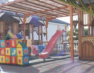 На ухоженной, закрытой территории отеля «Олеся Лоо» в 0,2 га хватает места для отдыха, игр и уединения. Открытый пресноводный бассейн, размерами 5Х10 м, имеет удобную релакс-зону с шезлонгами и открытой беседкой. Среди композиций пальм и других диковинок южной природы удобно разместились кафе-терраса, площадки: для мангала и игровая.