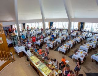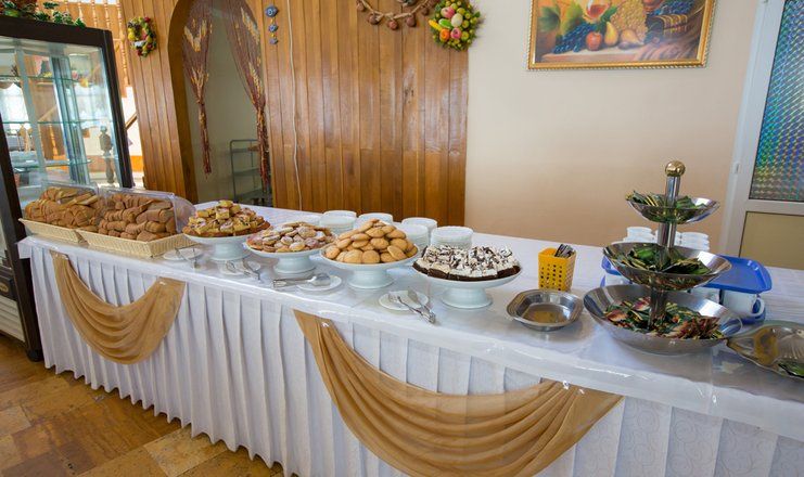 В стоимость проживания в пансионате включено трехразовое питание, организованное по системе «шведский стол» в уютном ресторане, специализирующемся на русской, европейской и кавказской кухне. В летний сезон также работает шашлычная, бар и фитобар.