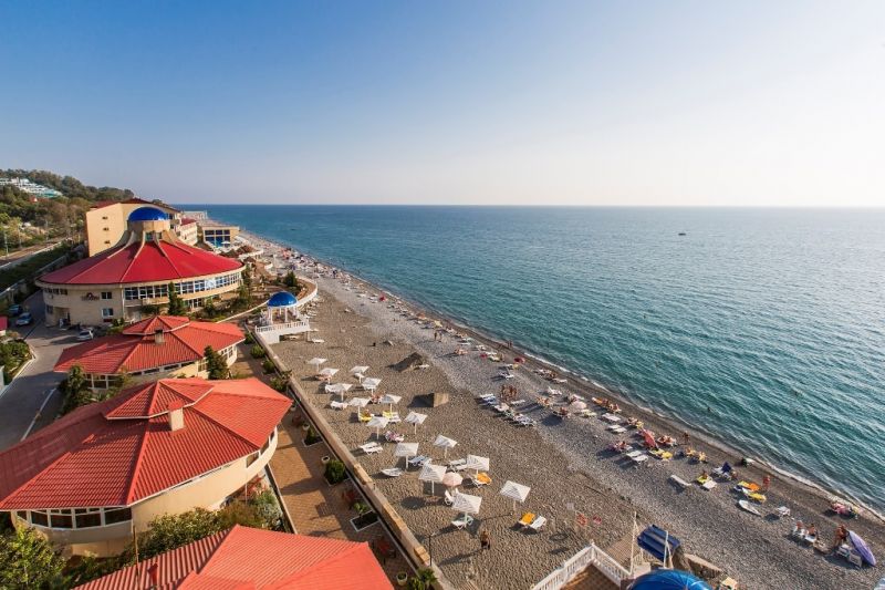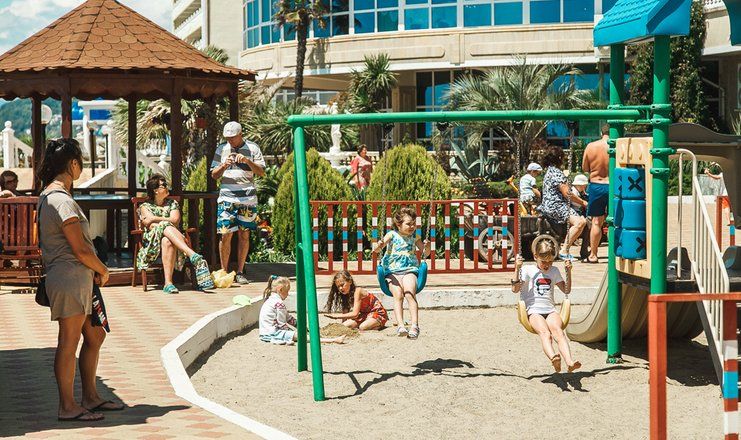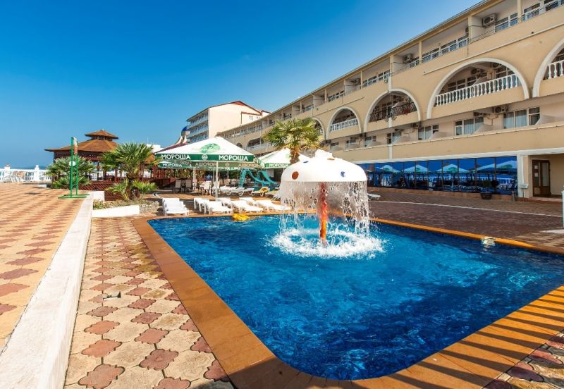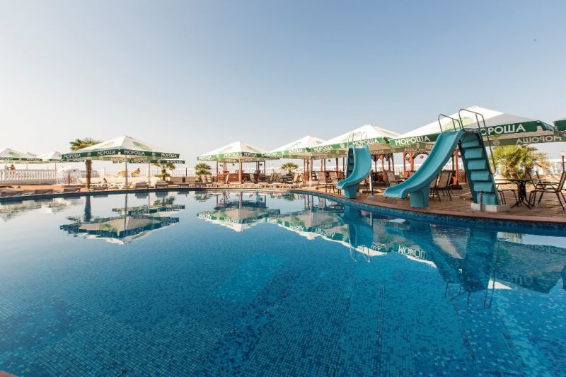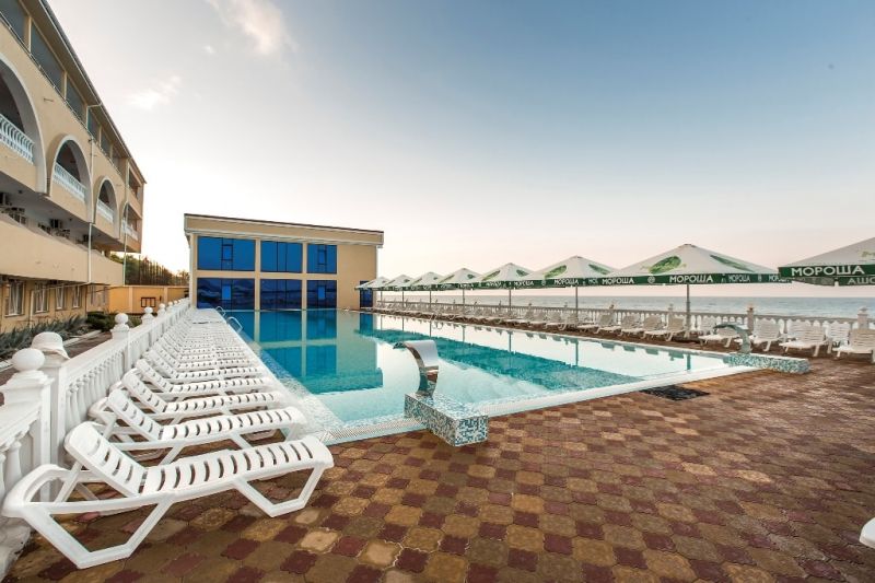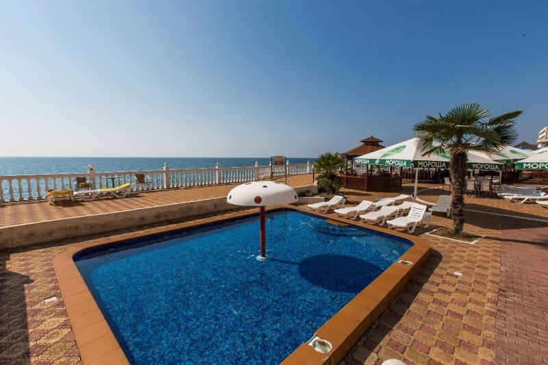 На пляже отеля имеются аэрарий и лежаки. Здесь есть возможность не только насладиться пляжным отдыхом и купанием в Черном море, но и устроить себе катание на скутерах, ватрушках, бананах.