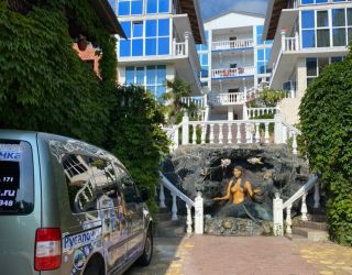 Гостевой дом «Русалочка» находится в курортном поселке Лоо в 17 километрах от центра Сочи. В шаговой доступности аквапарк «АкваЛоо», несколько столовых, кафе и сетевых магазинов. Дорога до аэропорта займет около часа без пробок. Железнодорожная станция расположена всего в 2 километрах.