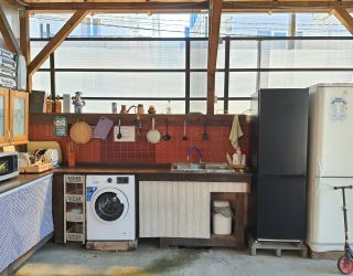 В распоряжении гостей большая оборудованная кухня, мангальная зона, два общих балкона на этаже.