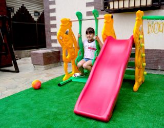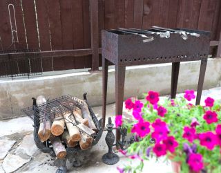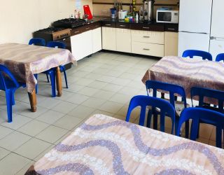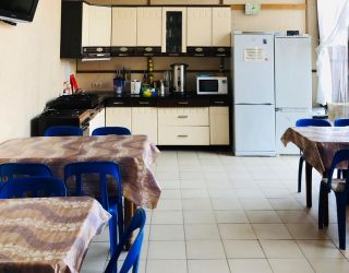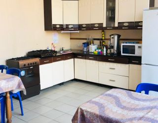 Для отдыхающих в доме работает общая кухня, оснащенная необходимой посудой и бытовой техникой. Во дворике организована мангальная зона с принадлежностями для барбекю. Для детей предусмотрена игровая площадка, есть стульчики для кормления и детские кроватки.