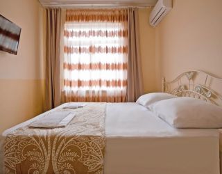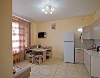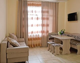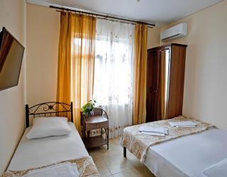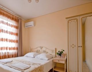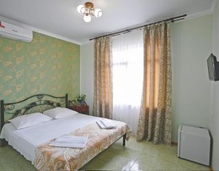 В гостевом доме в Лоо 10 номеров – в каждом номере все удобства: уборная, кондиционер, холодильник, телевизор, шкаф для одежды, тумба.