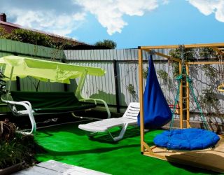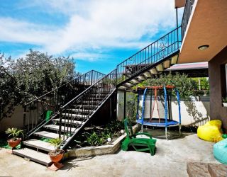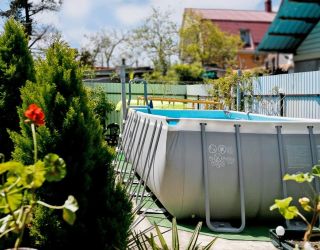 На территории оборудованы детская площадка с качелями, бассейн, батут. Для гостей оборудовано место для отдыха с шезлонгами и кресло-мешками. Также в свободном пользовании есть мангал со всеми принадлежностями для барбекю.